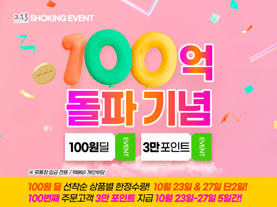 100억돌파 축하 할인전 Go~흥!하게 쇼핑하자