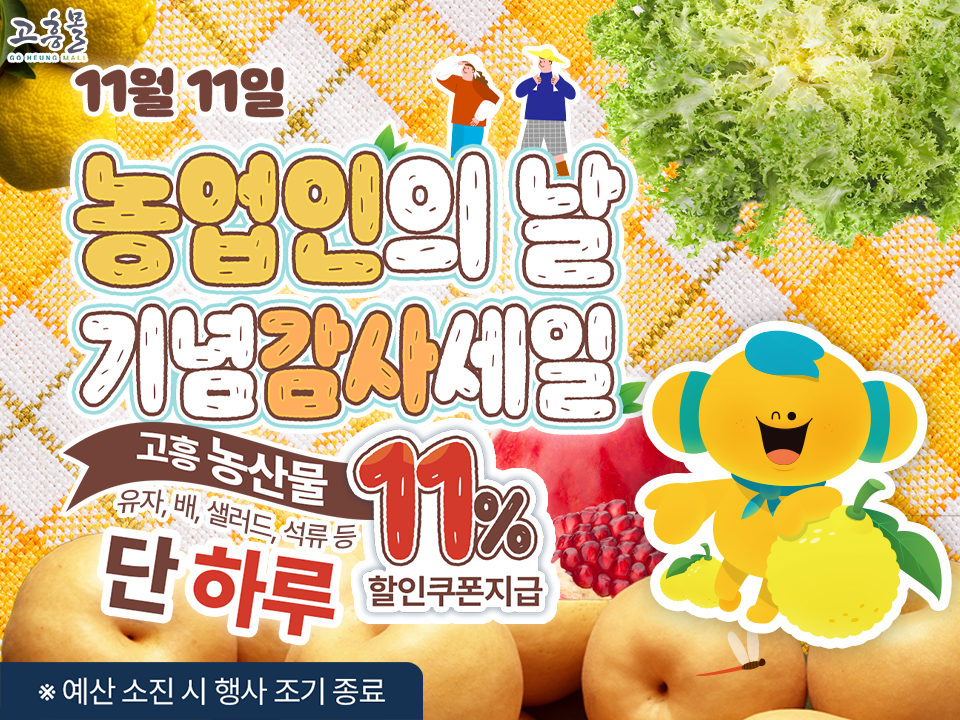 농업인의 날 기념 감사세일 단하루 고흥 농산물 11%할인!