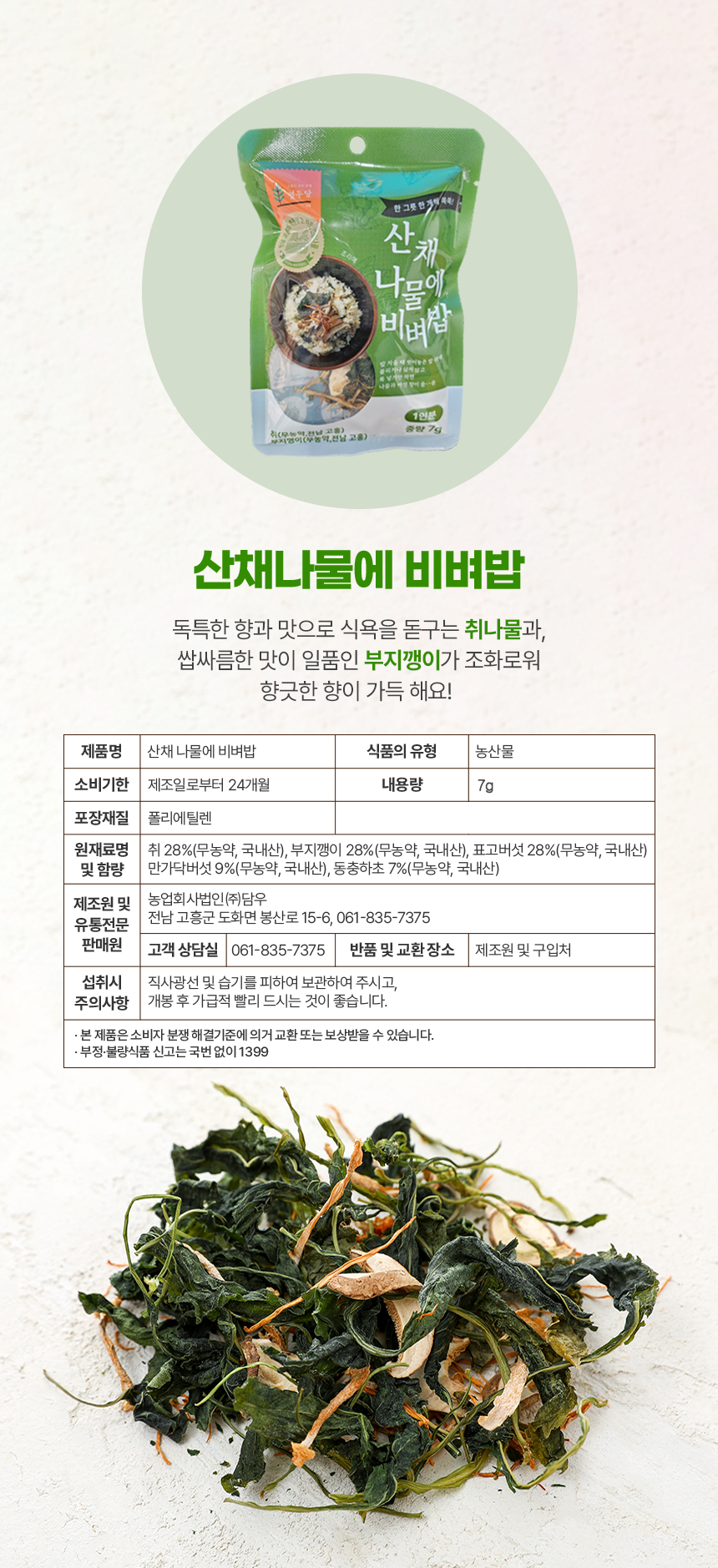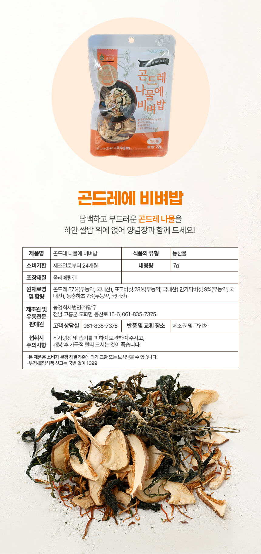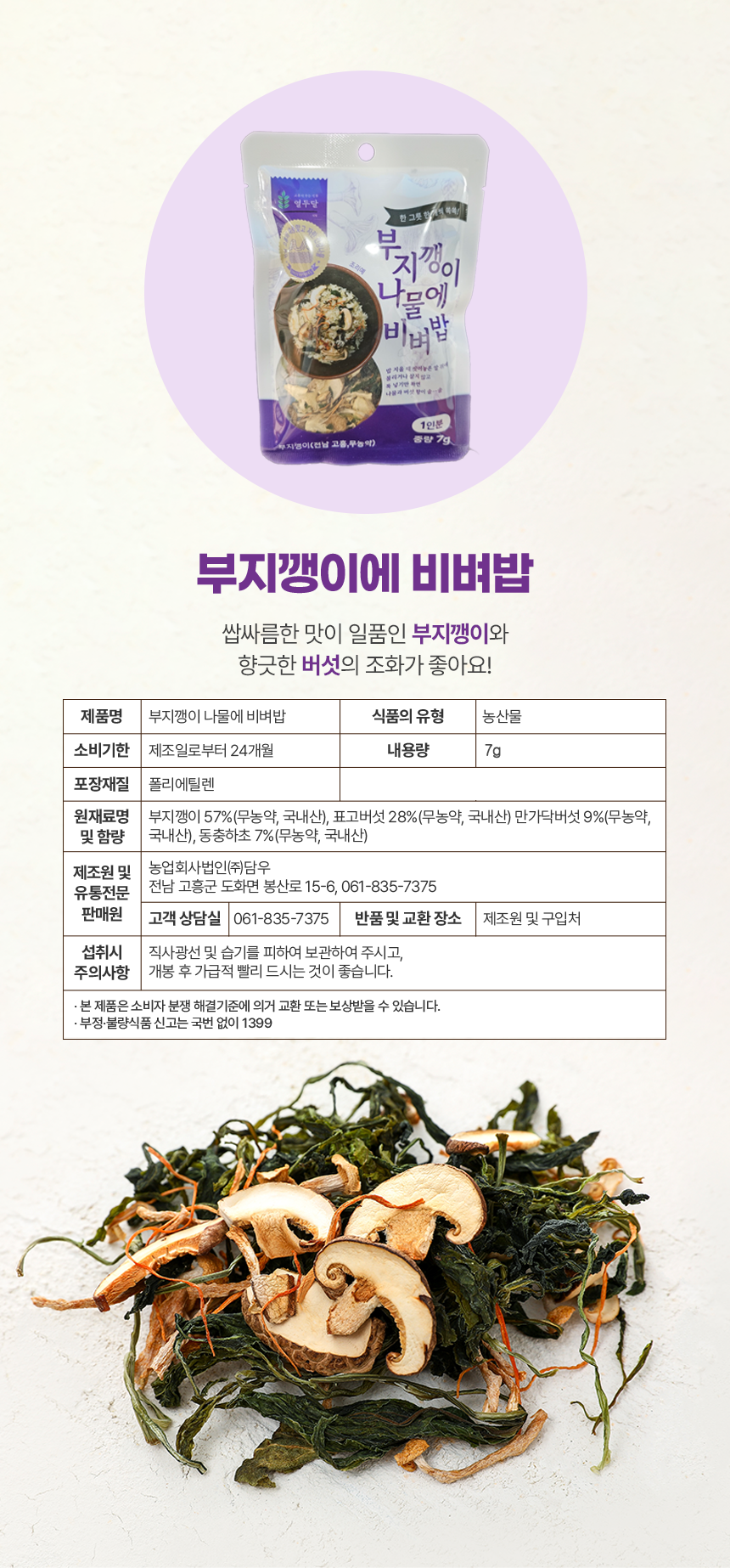 | 포장단위별 용량(중량) | 7g,(1인분) |
