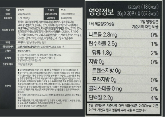 | 영유아식 또는 체중조절식품 등에 해당하는 경우 표시광고 사전심의필 | 상품페이지 참고 |