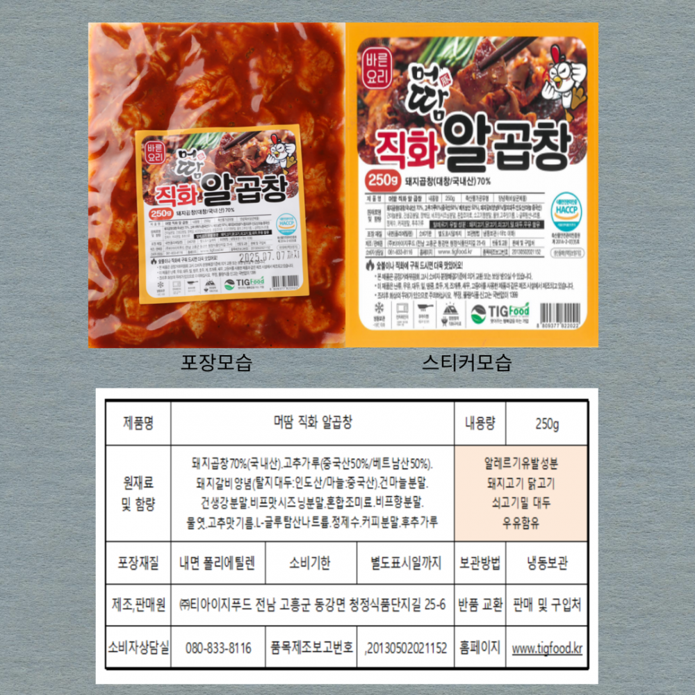 | 유전자재조합식품에 해당하는 경우의 표시 | 상품페이지 참고 |