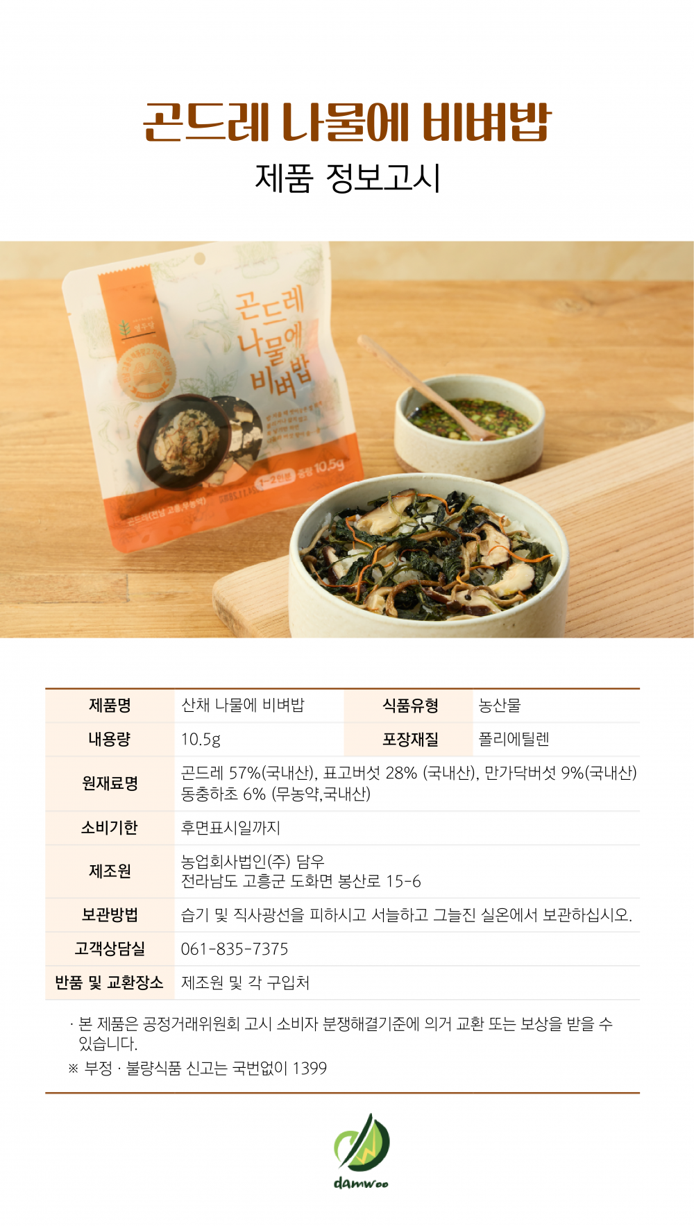| 포장단위별 수량 | 10.5g(1~2인분) x6봉 |
