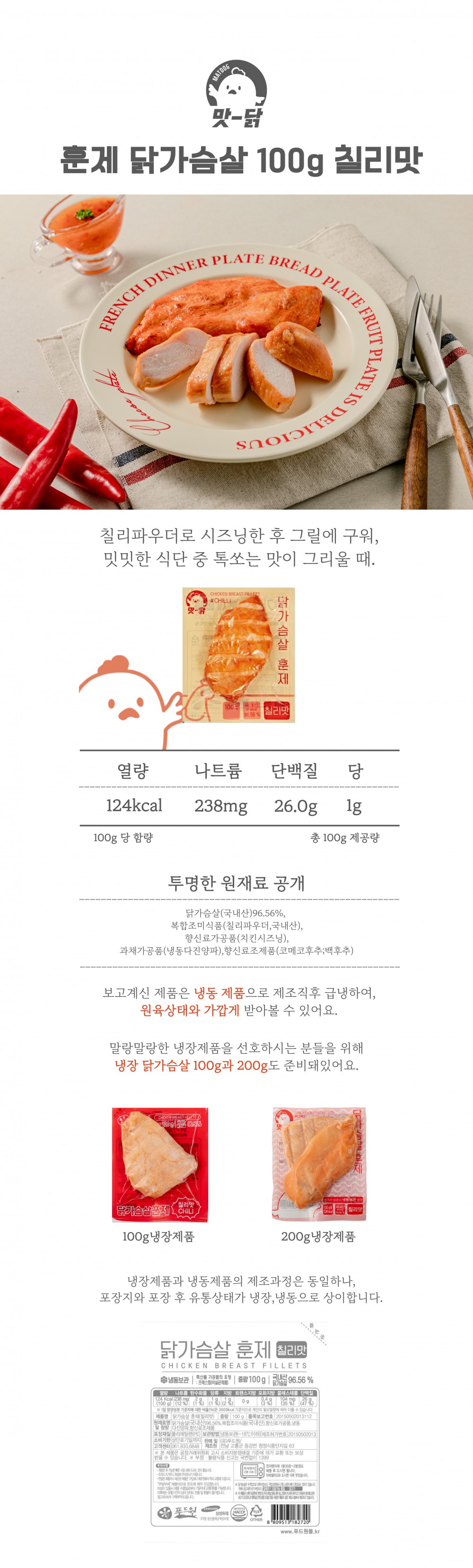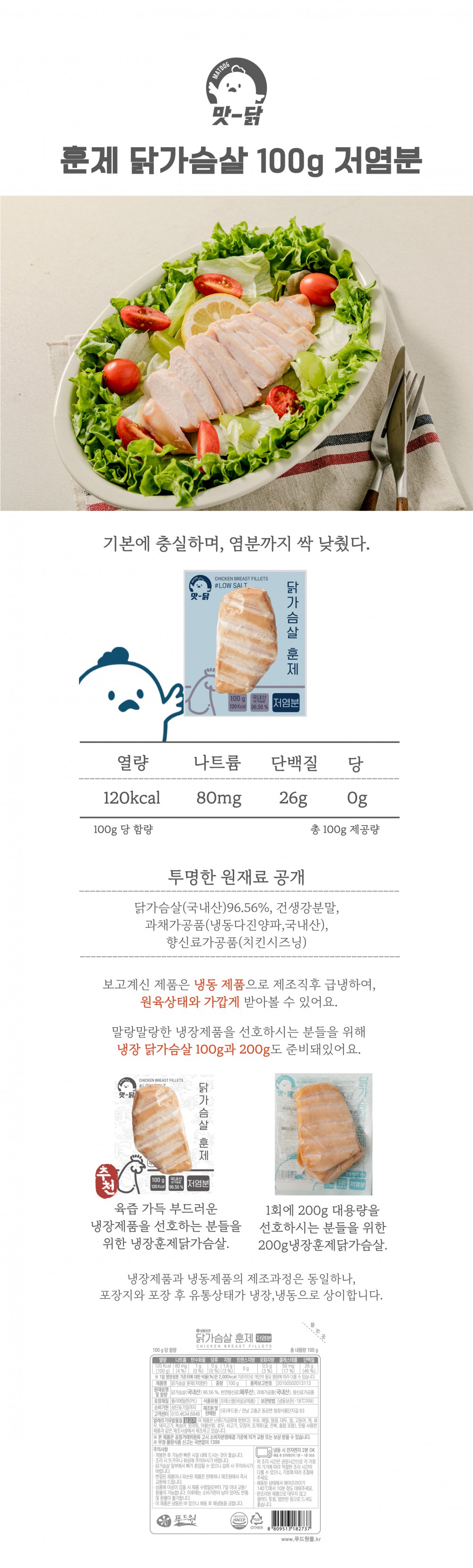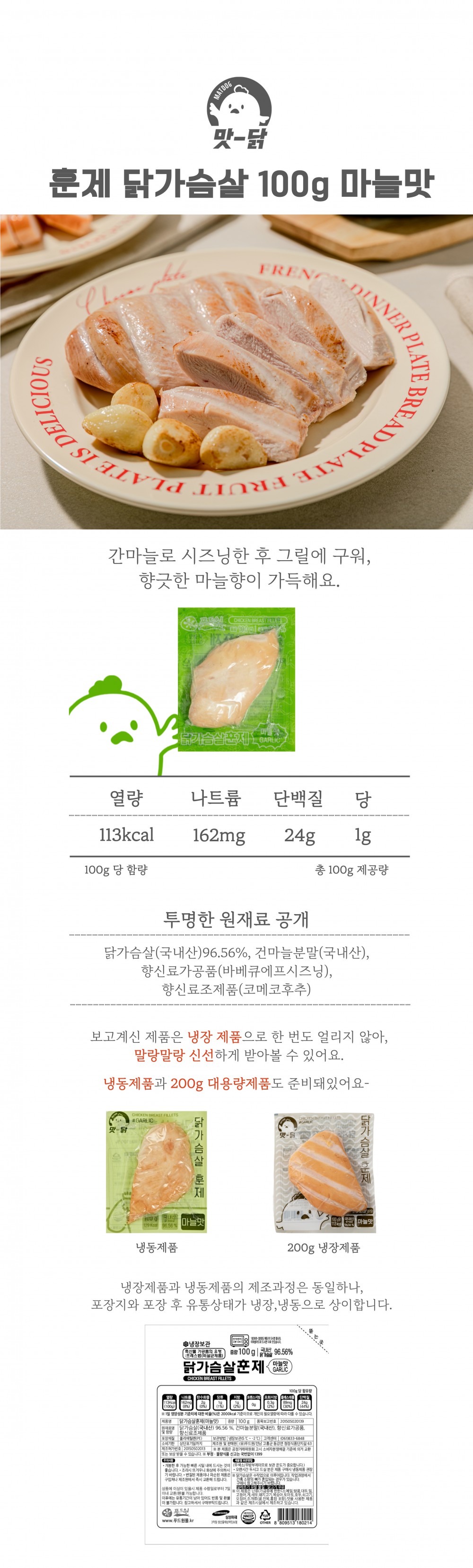 닭가슴살 100g (냉동) 저염맛/마늘맛/칠리맛/훈제맛