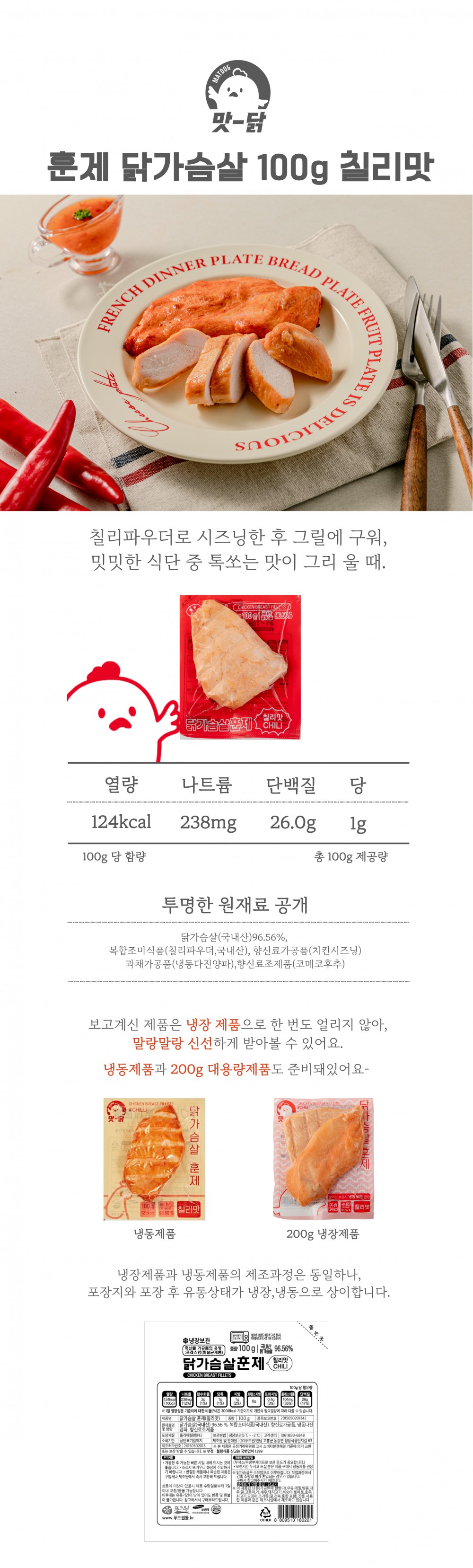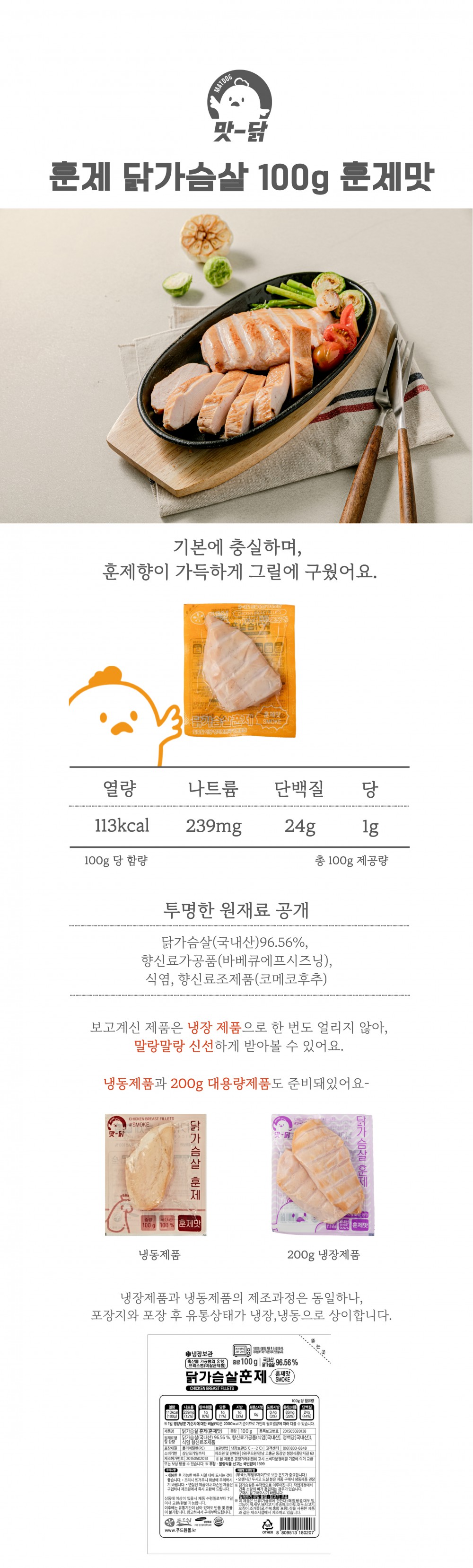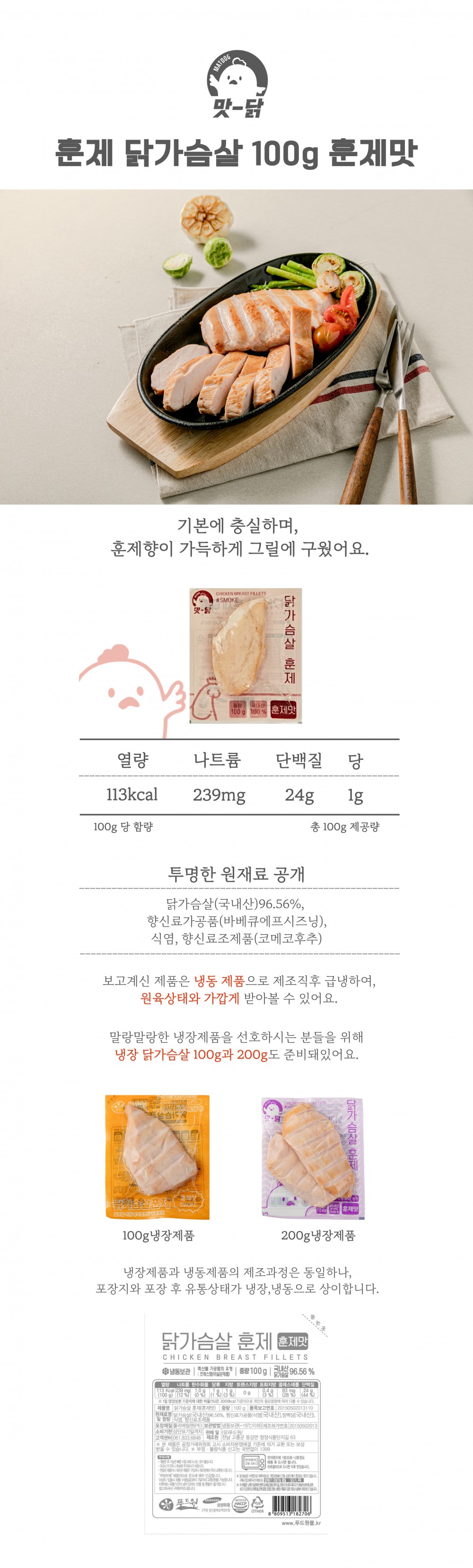 닭가슴살 100g (냉동) 저염맛/마늘맛/칠리맛/훈제맛