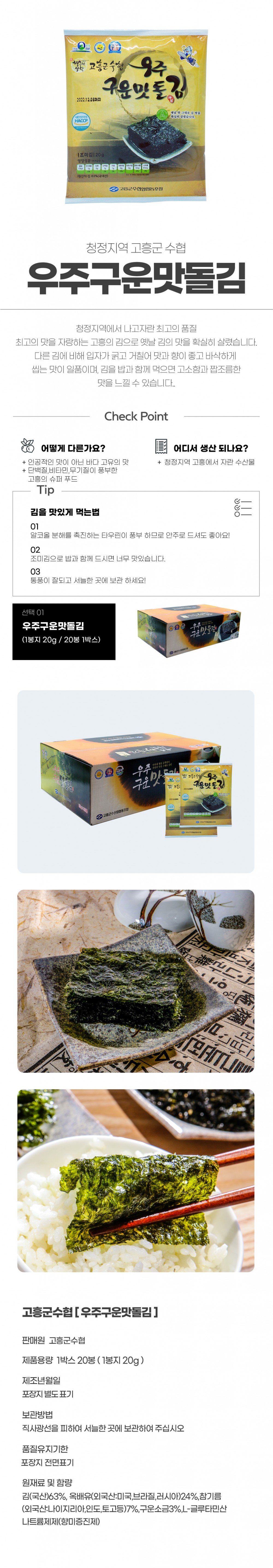 우주구운맛돌김 (1봉20g x 20개 1박스) 정말 고소한 맛이에요 |