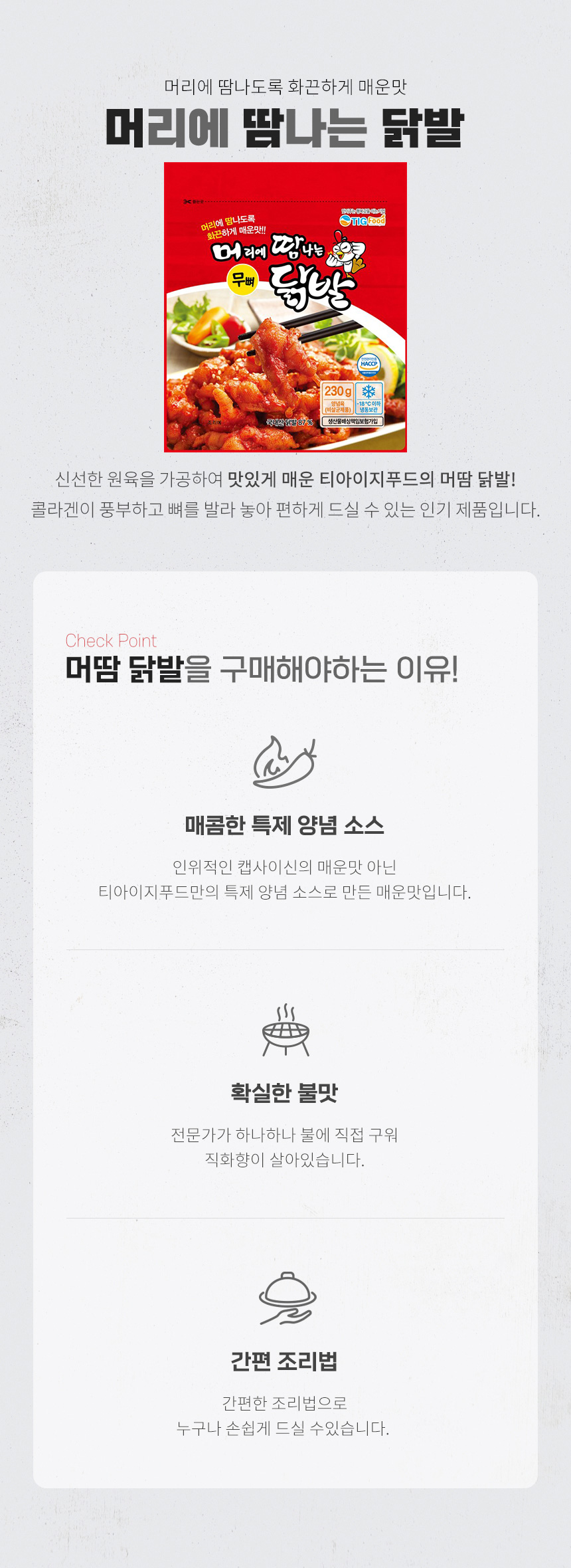 | 이름처럼 맛있게 매운 닭발입니다. 재주문했어요. | k_5*************** | 2024-02-01 | ![]() ![]() ![]() ![]() ![]() |