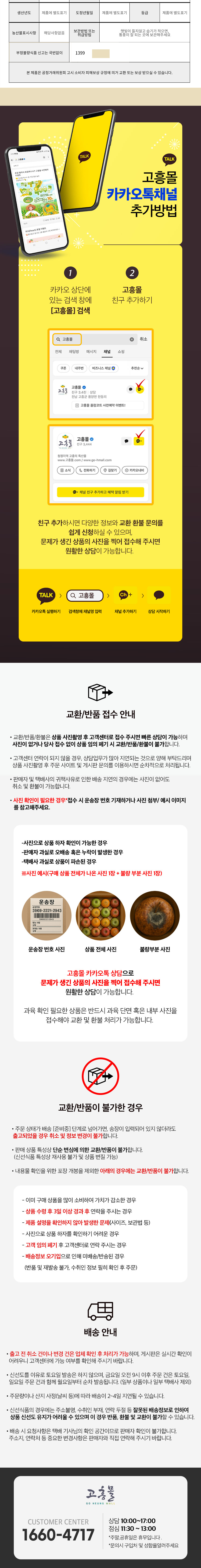 。 [1:1문의]를 이용하시거나 고흥몰 카카오톡 혹은 고흥몰 고객센터(1660-4717)로 문의해주시면 됩니다.