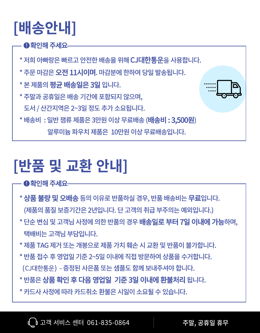 교환 및 반품이 필요하실 경우, 고흥몰 고객센터 Q&A를 확인해 주시면 보다 정확한 절차와 안내를 받으실 수 있습니다.