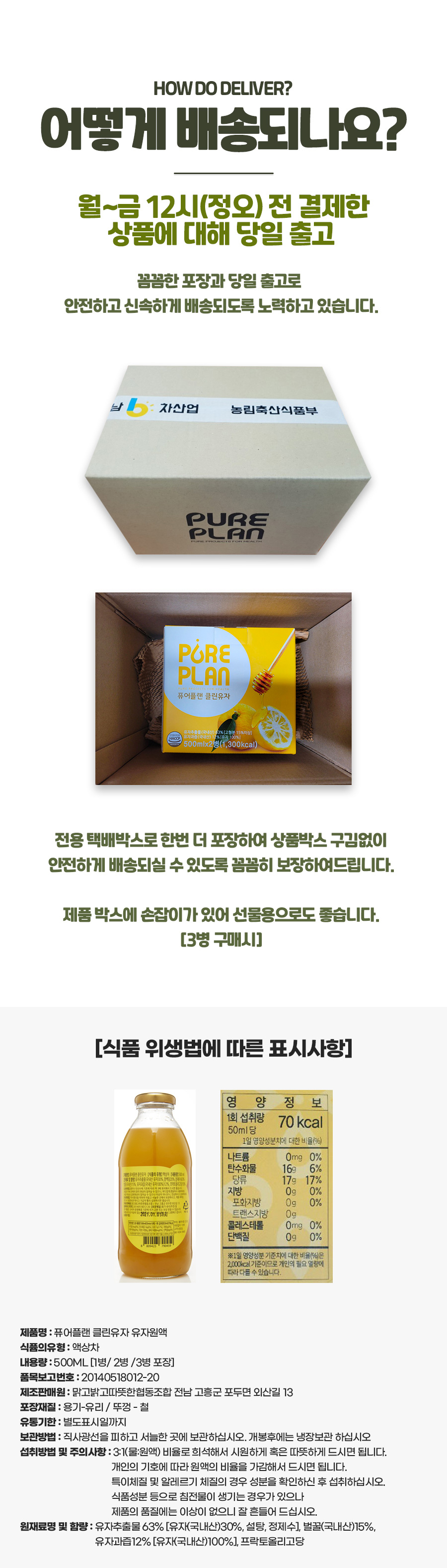 | 원재료명 및 함량 | 유자추출물(국내산)63%[고형분 15%이상, 유자30%, 설탕, 정제수], 벌꿀(국내산)15%, 유자과즙(국내산12%[유자 100%],프락토올리고당 |