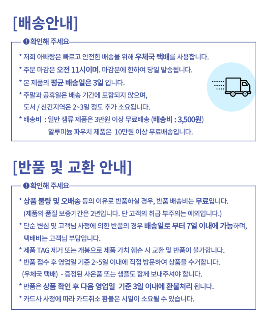 。 본 쇼핑몰이 귀책인(제품하자/오배송/기타...)경우에는 무료로 교환/반품을 진행하오며,