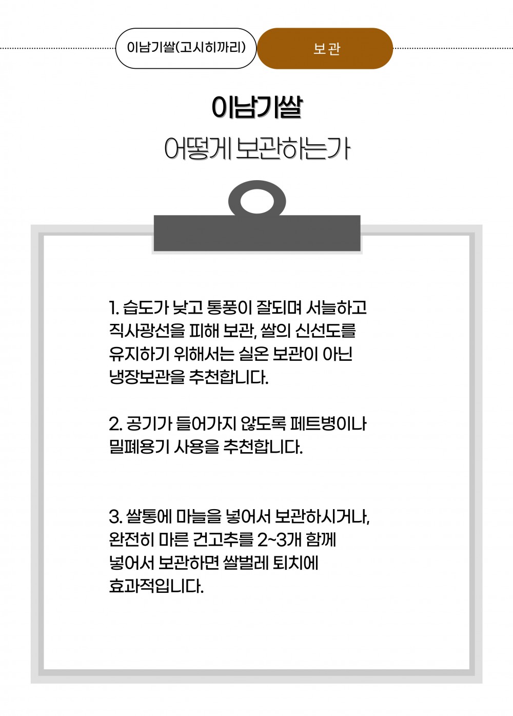 | 보관방법 또는 취급방법 | 햇빛이 들지않고 습기가 적으며, 통풍이 잘 되는 곳에 보관 |