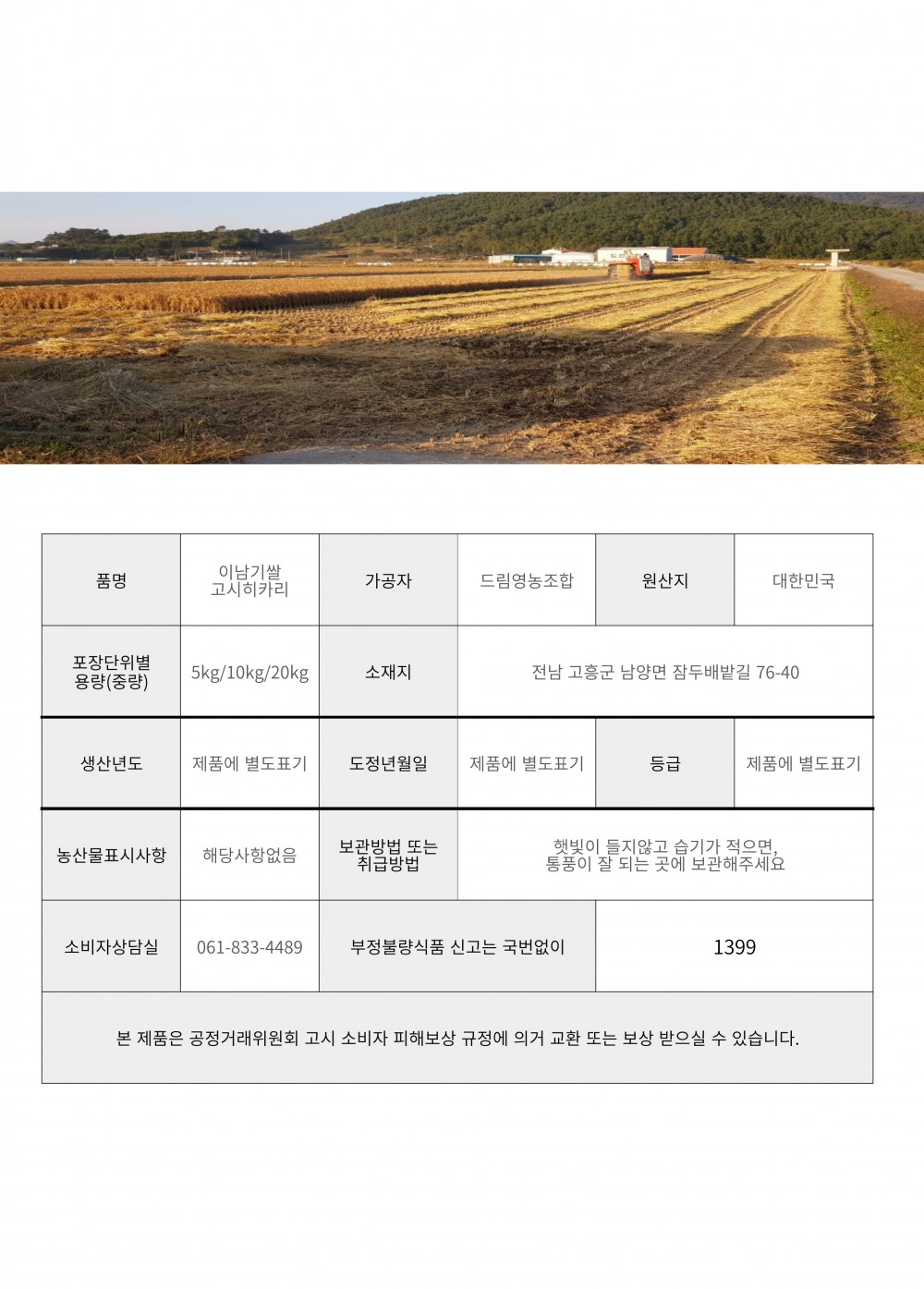 | 소비자상담 관련 전화번호 | 061-833-4489 |