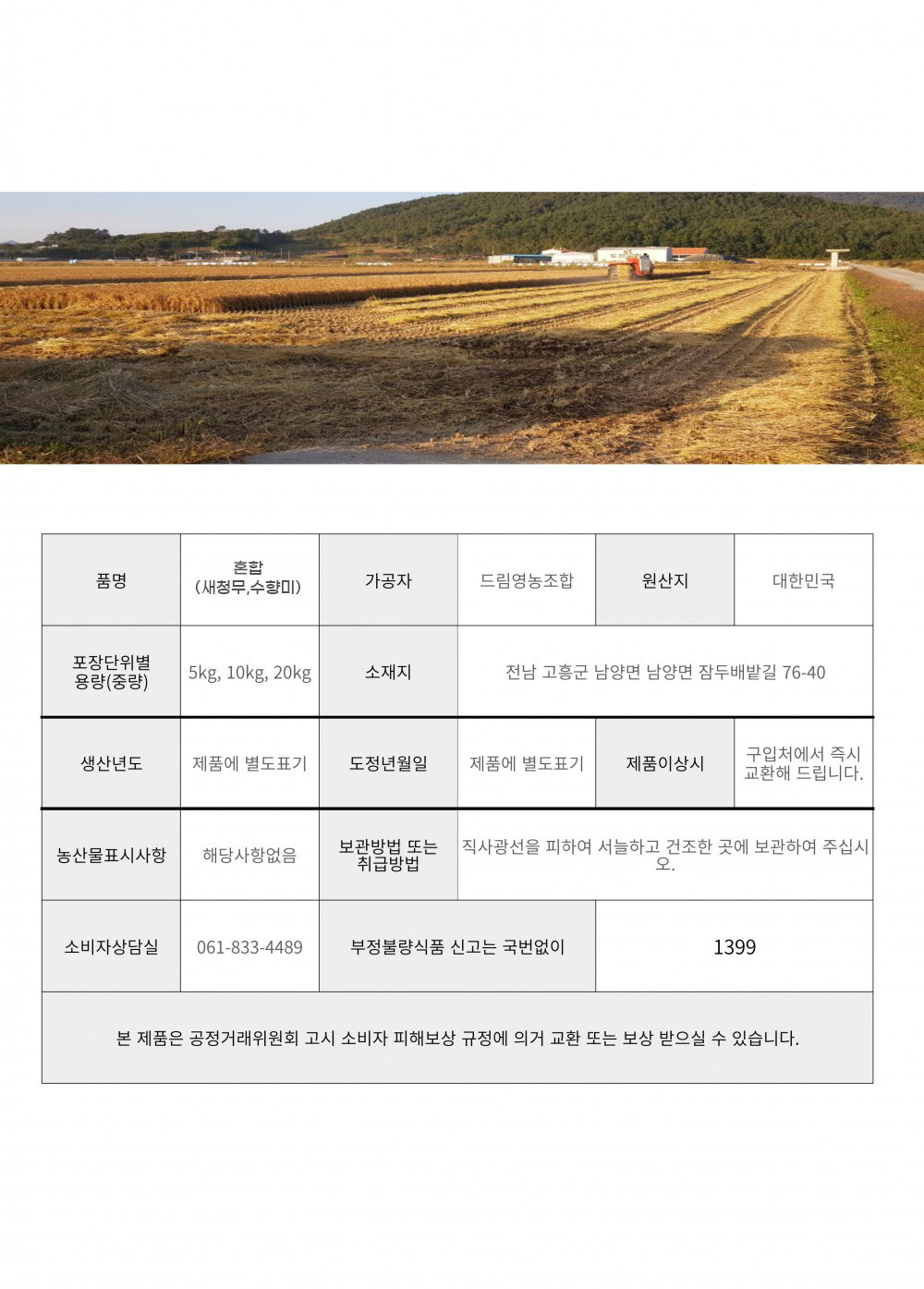 | 제조연월일 | 25년산 / 당일도정 |